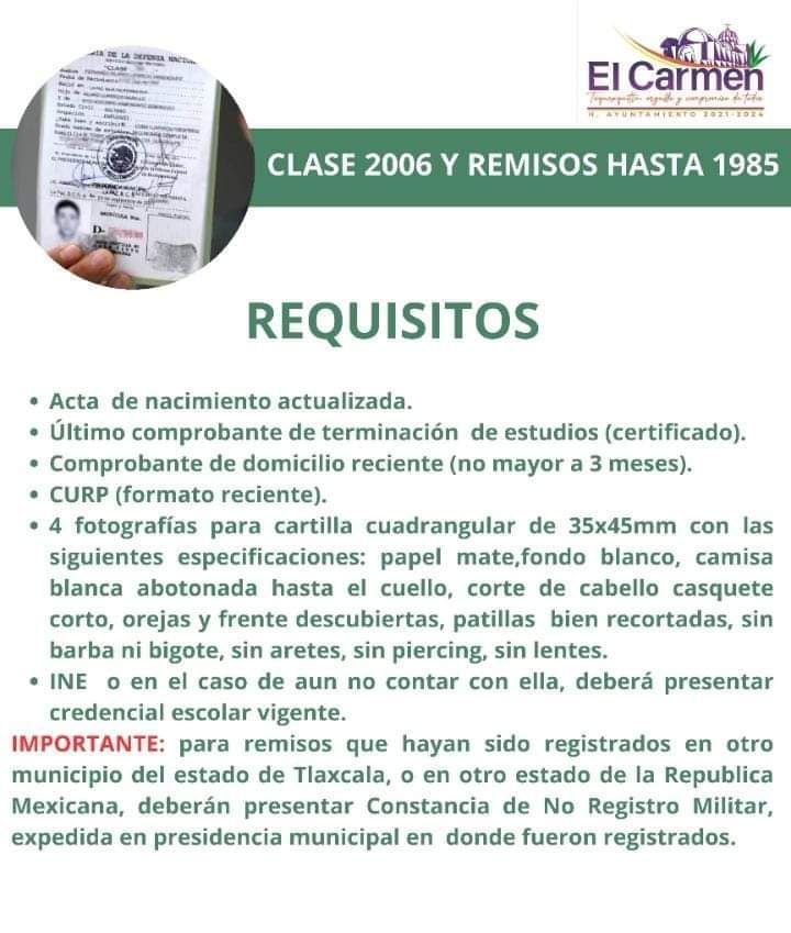 El Gobierno Municipal en coordinación con la Regiduría de Seguridad Pública te informa a la clase 2006 y remisos hasta 1985.