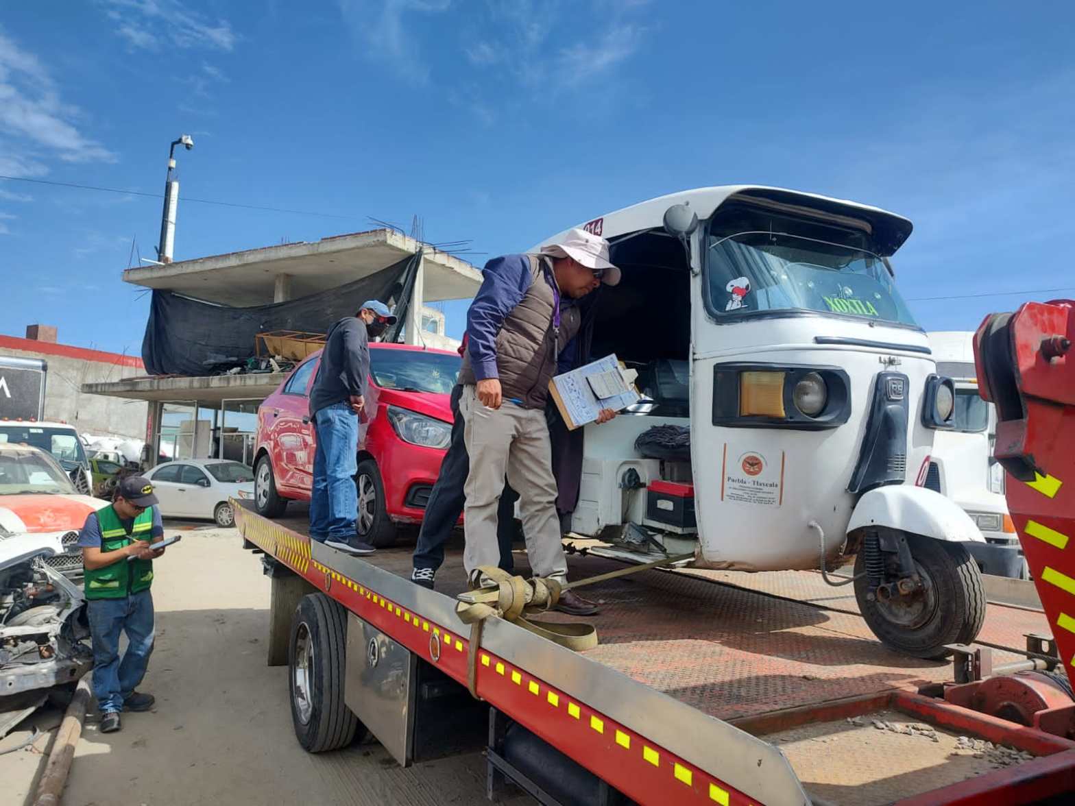 En el mismo punto de inspección, se detectó una motocicleta adaptada, conocida como mototaxi, que realizaba también el servicio de transporte de personas sin la autorización correspondiente, por lo que se procedió de acuerdo a lo que establece el Reglamento de la Ley de Comunicaciones y Transportes del Estado, al tratarse de una unidad irregular cuyo servicio no está autorizado por la dependencia estatal.