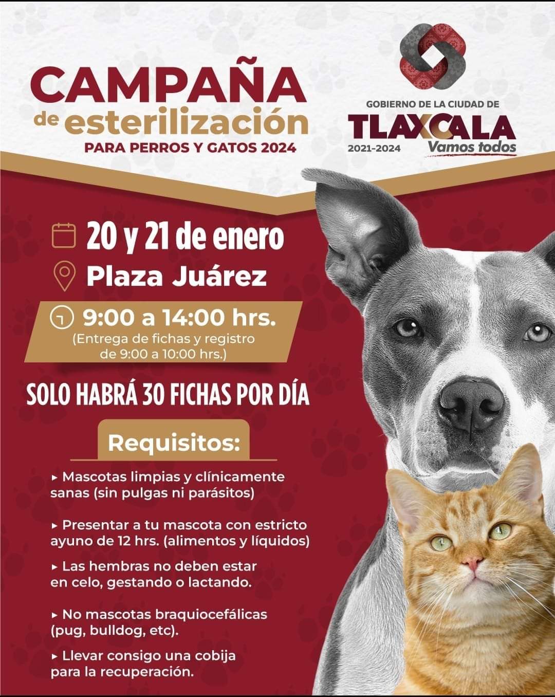 Les recordamos que este fin de semana se realizará la primera campaña de esterilización de perros y gatos de 2024 en la ciudad capital. 🐶🐱
