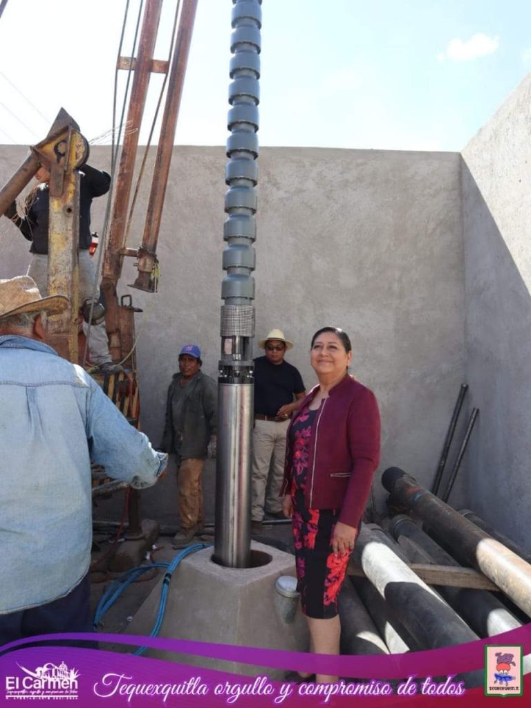 La Alcaldesa Araceli Martínez Cortez, acudio a las instalaciones de lo que será el nuevo pozo con la intención de verificar y presenciar la instalación de la bomba de 150 caballos de fuerza que servirá como distribuidora del vital liquido a más de 1800 pobladores de Barrio de Guadalupe, dicha bomba dotará de 1,080 litros por minuto a las familias de esta colonia.