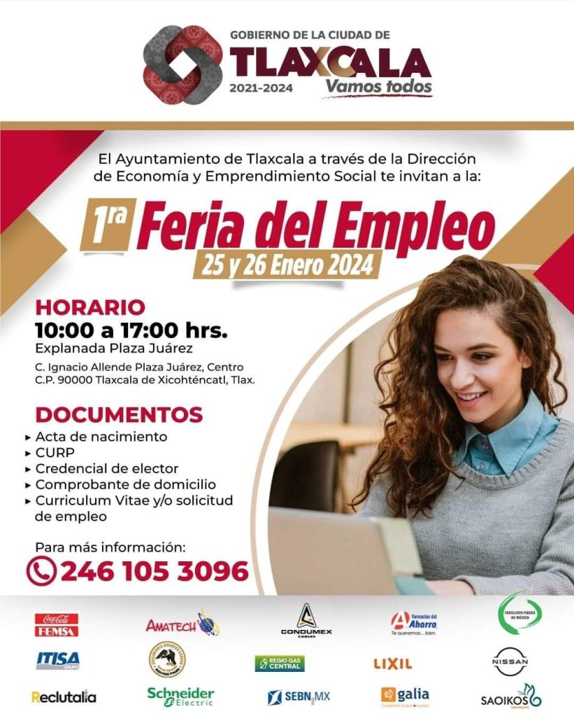 Este jueves 25 y sábado 26 de enero, el Ayuntamiento de Tlaxcala a través de la Dirección de Economía y Emprendimiento invitan ala ciudadanía en general a la primera feria del empleo 2024 con más de 150 vacantes, contando con 16 empresas participantes.