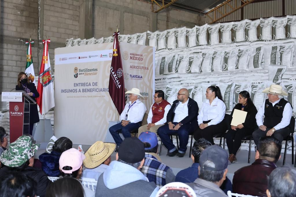 En el evento, estuvieron la directora general de suelos y agua y coordinadora de del programa nacional de fertilizantes de la Secretaría de Agricultura, Areli Cerón Trejo; el delegado federal de programas para el Bienestar, Carlos Luna Vázquez; el representante de la Secretaría de Agricultura y Desarrollo Rural en el estado, Misael del Razo Hernández y el secretario de Impulso Agropecuario, Rafael de la Peña Bernal, así como campesinos de Calpulalpan, Hueyotlipan, Españita, Nanacamilpa y Benito Juárez.