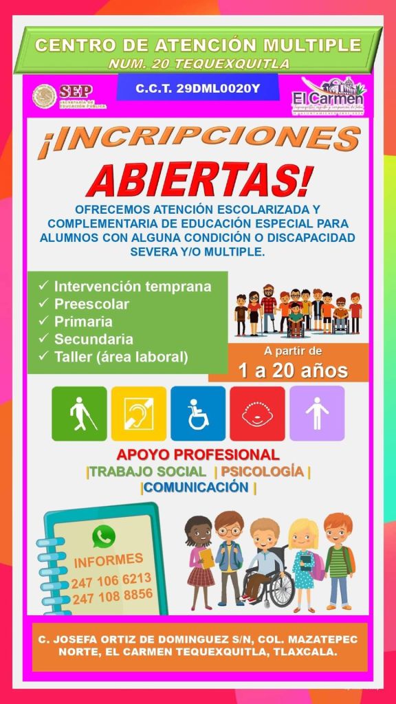 Y OFRECE ATENCIÓN ESCOLARIZADA Y COMPLEMENTARIA PARA PERSONAS CON ALGUNA CONDICIÓN O DISCAPACIDAD SEVERA Y/O MULTIPLE.
