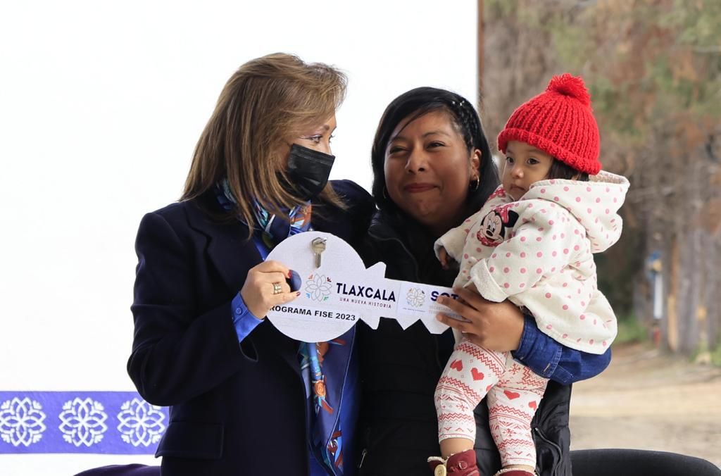 La titular del Ejecutivo local, Lorena Cuéllar Cisneros, a través de la Secretaría de Ordenamiento Territorial y Vivienda de Tlaxcala (SOTyV), entregó los primeros 19 apoyos de 52 correspondientes al programa de “Viviendas adecuadas con espacios dignos” en el municipio de Santa Cruz Tlaxcala.