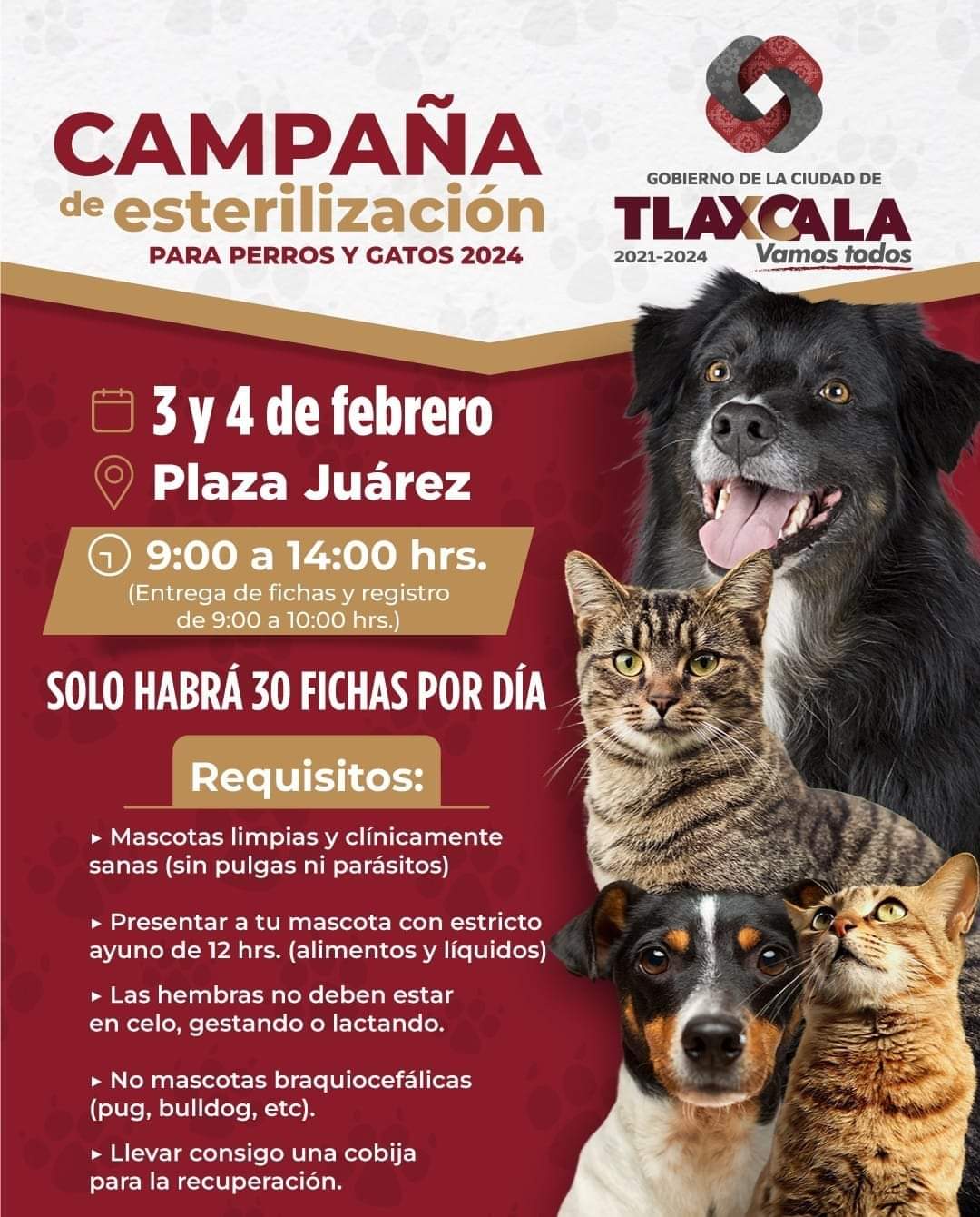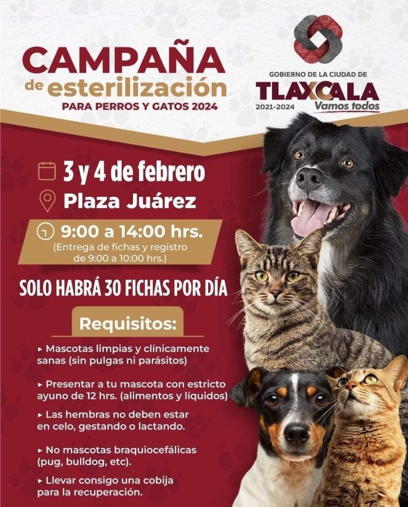 Nueva fecha de esterilización gratuita de perros y gatos en Tlaxcala Capital