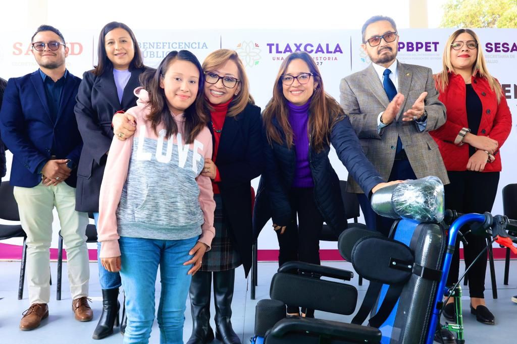 La gobernadora del estado, Lorena Cuéllar Cisneros encabezó la primera Jornada de entrega de 500 apoyos funcionales y de movilidad de 2024, consistentes en sillas de ruedas estándar, sillas de ruedas PCI, sillas de baño, bastones y andaderas en beneficio de 500 tlaxcaltecas.