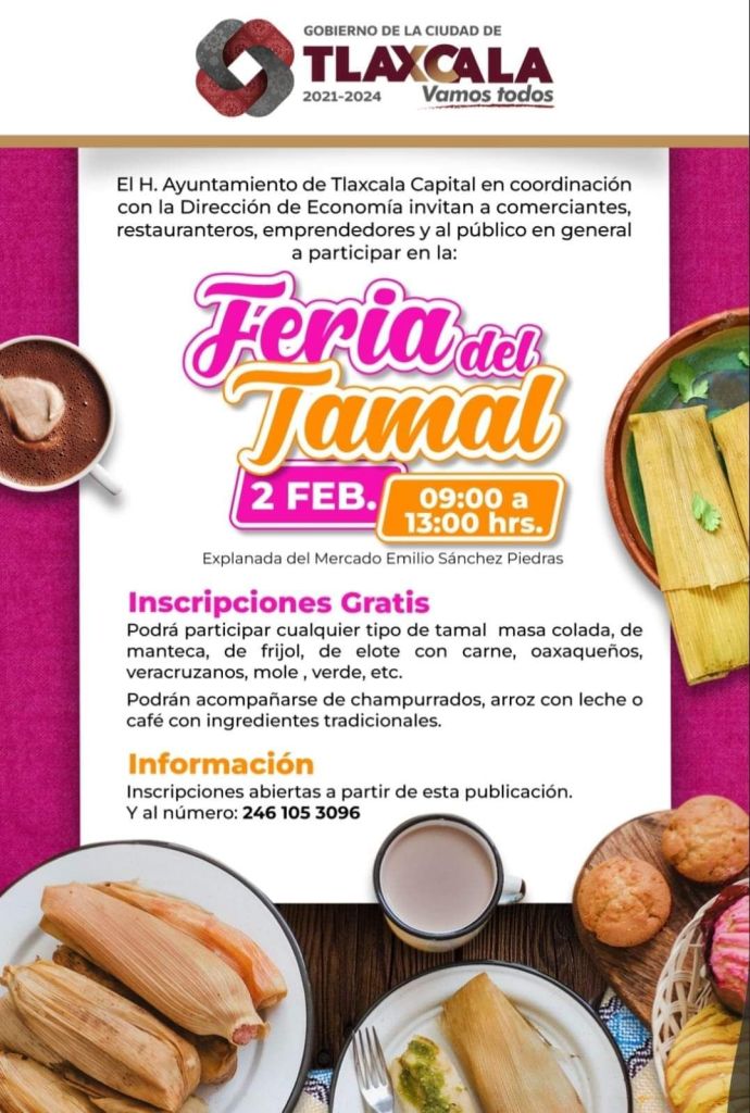 El Ayuntamiento capitalino te invita a participar en la Feria del Tamal 🫔 de Tlaxcala Capital este 2 de febrero.
