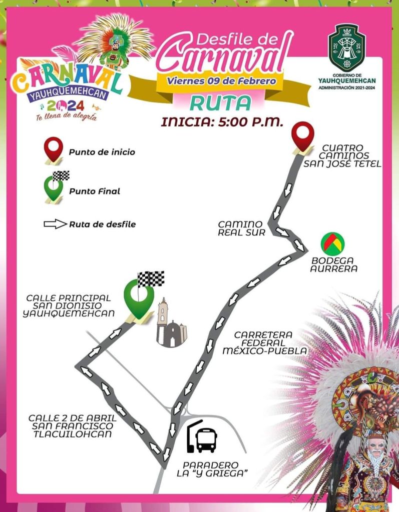 🎷🎊 No te pierdas el próximo viernes 9 de febrero a las 17:30 horas el «Magno Desfile del Carnaval Yauhquemehcan 2024» 🎭, por las principales calles de las comunidades de San José Tetel, Santa Úrsula, Ocotoxco, Tlacuilohcan, y Carretera Federal.