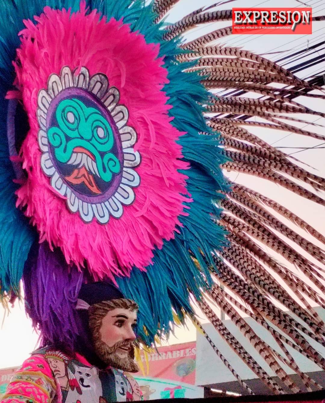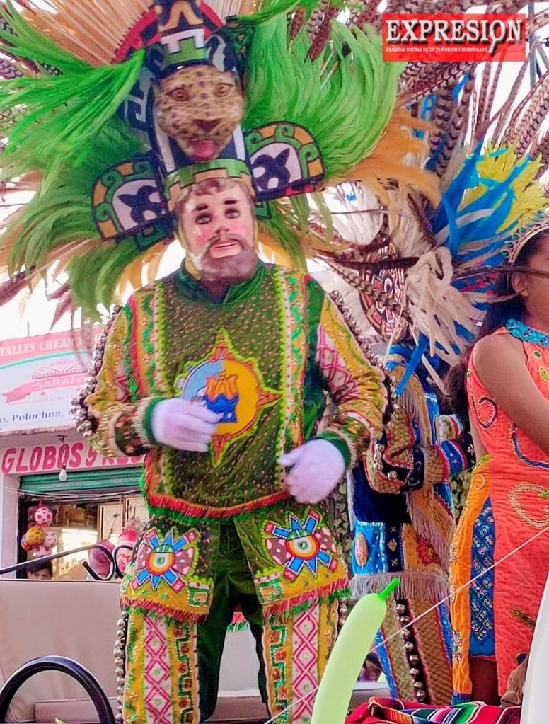 Contingentes de Camadas de Huehues de las distintas comunidades y carros alegóricos arreglados acorde al evento es como lucieron en este colorido desfile.