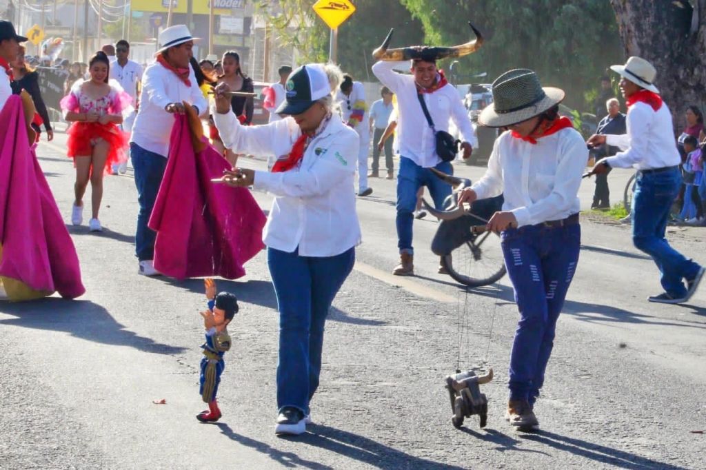 Cerca de 50 participantes mostraron con habilidad y destreza el manejo de diferentes títeres, una demostración del espíritu taurino, tan representativo de este municipio, además de compartir Muéganos, uno de los dulces típicos de Huamantla, con los espectadores.