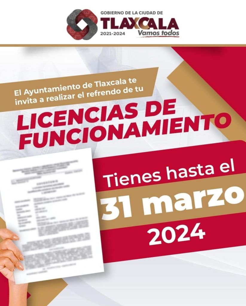 Atención propietarios de establecimientos o negocios de Tlaxcala Capital, el Ayuntamiento te invita a realizar tu refrendo en tiempo y forma de la licencia de funcionamiento.
