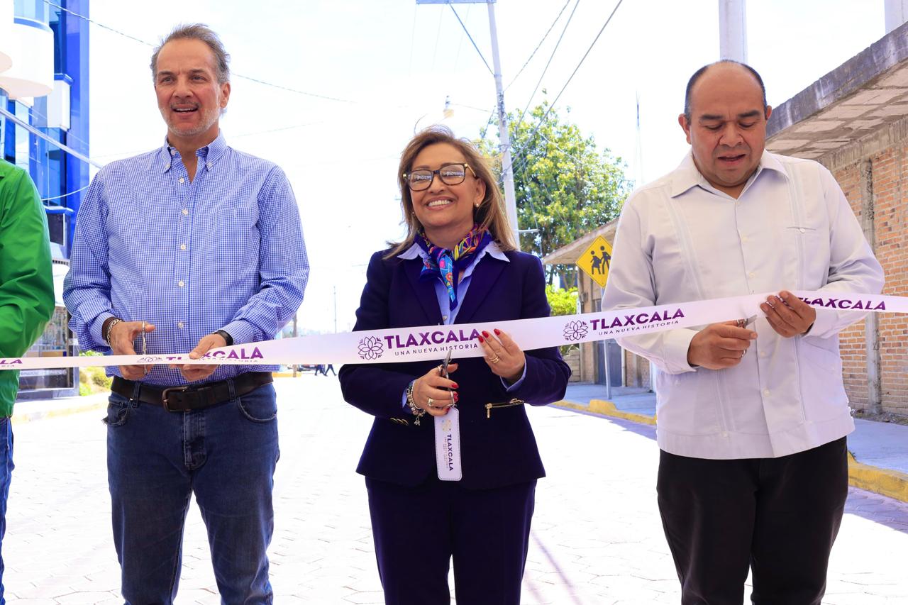 La gobernadora del estado, Lorena Cuéllar Cisneros, a través de la Secretaría de Infraestructura (SI) y el programa “Peso a peso” entregó la primera etapa de la sustitución de pavimento con adoquín de la Av.16 de septiembre en el municipio de Xaloztoc.