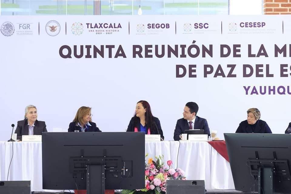 La presidente municipal María Anita Chamorro Badillo asistió este viernes, la quinta reunión de la Mesa Interregional de Paz en #Tlaxcala, en la que participó la gobernadora del estado Lorena Cuéllar , Martha Beatriz López López, representante de la Secretaría de Seguridad y Protección Ciudadana federal (SSPC), integrantes del gabinete de seguridad estatal y los 60 presidentes municipales.