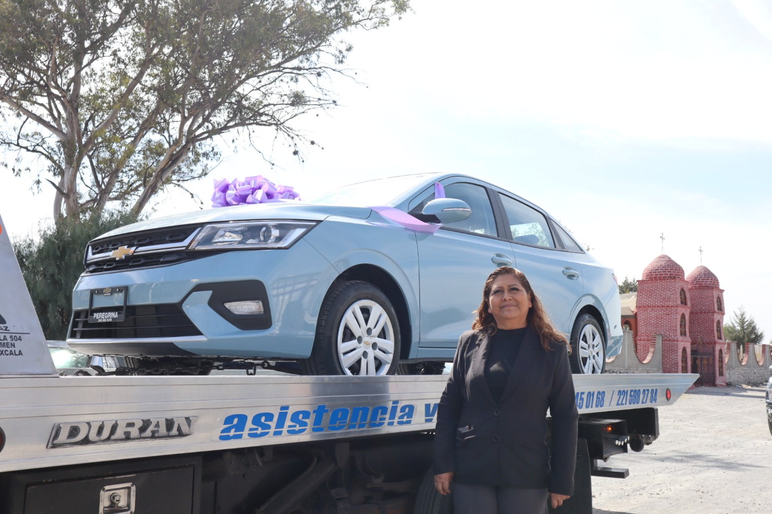 El automóvil que se entregará al ganador es un Chevrolet Aveo modelo 2024, color azul de 4 cilindros, el ganador recibirá de manos de la presidenta municipal la factura del vehículo, la póliza de seguro durante 6 meses y obviamente las llaves de la unidad.