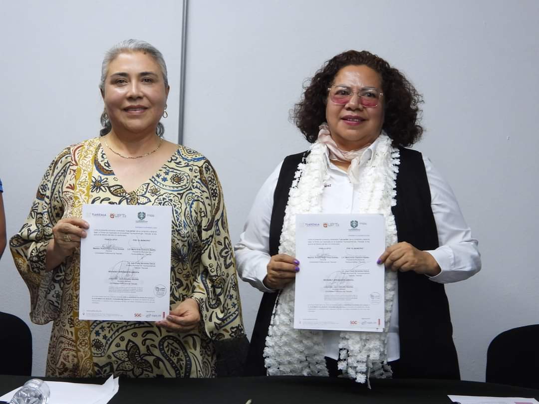La presidente municipal María Anita Chamorro Badillo y la rectora de la UPTx Rosalia Nalleli Pérez Estrada, firmaron el convenio entre la Universidad y el Gobierno de Yauhquemehcan 2021-2024 para la impartición de diplomados «Negocios para Mujeres Emprendedoras», «Negocios Inteligentes», «Educación Ambiental con un Enfoque Integral», «Industria 4.0», Administración Pública Municipal, en este centro de educación continua ubicado en la comunidad de Santa Úrsula Zimatepec Yauhquemehcan.