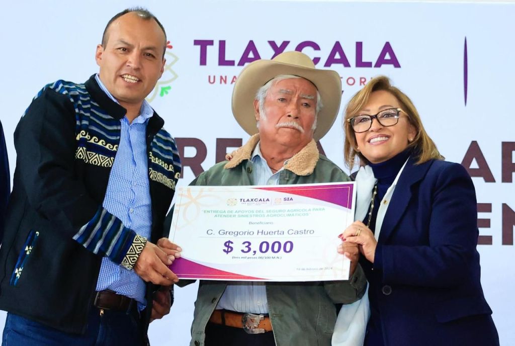 La gobernadora del estado, Lorena Cuéllar Cisneros, a través de la Secretaría de Impulso Agropecuario (SIA), encabezó la entrega de apoyos del Seguro Agrícola para atender siniestros agroclimáticos, a 3 mil 189 productores, de 29 Ejidos del municipio de Tlaxco, con una inversión superior a 4.7 millones de pesos; además, entregó 630 mochilas aspersoras a campesinos.