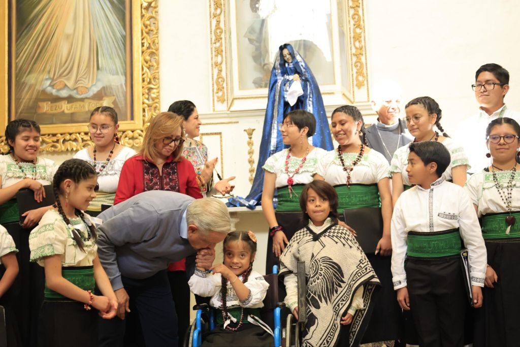 La ceremonia resaltó la gran importancia de la cultura en Tlaxcala con la participación del Coro de Niñas y Niños “Voces Yumhu” de Ixtenco, dentro del templo, para recibir al primer mandatario, con la interpretación, en español y yumhu, de la canción “El necio”, del cantautor cubano Silvio Rodríguez.