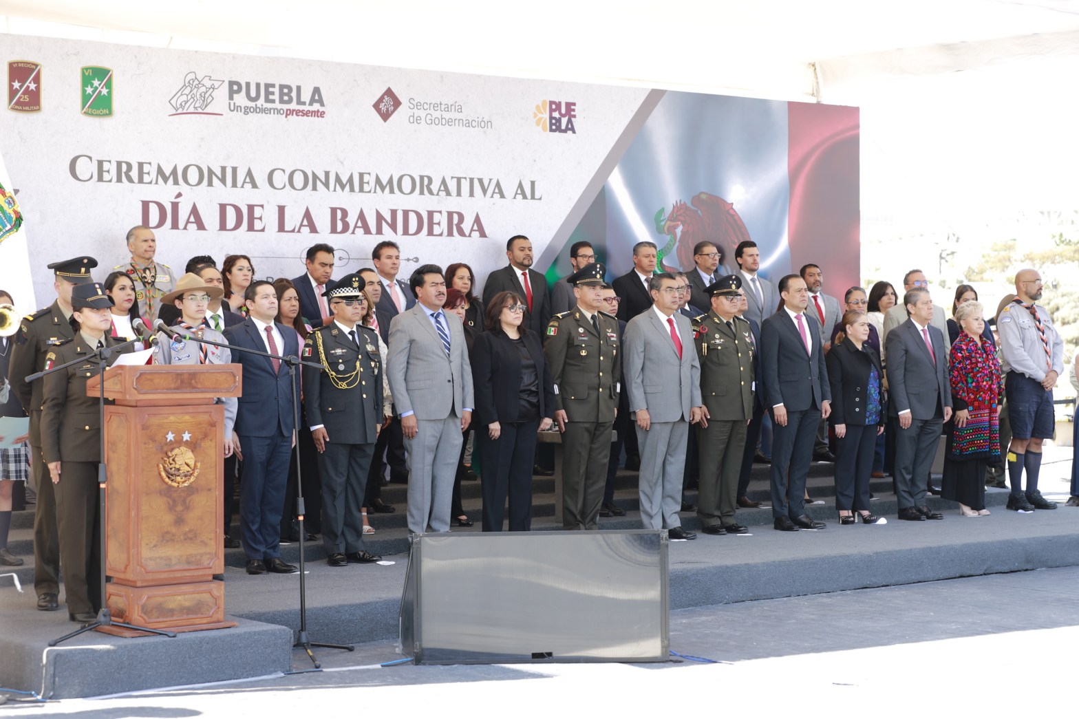 En la ceremonia en Puebla estuvieron presentes el comandante de la VI Región Militar, Julio Álvarez Arellano; José Manuel Ramírez Martínez, comandante de la XXV Zona Militar, secretarias y secretarios estatales, legisladores y estudiantes.