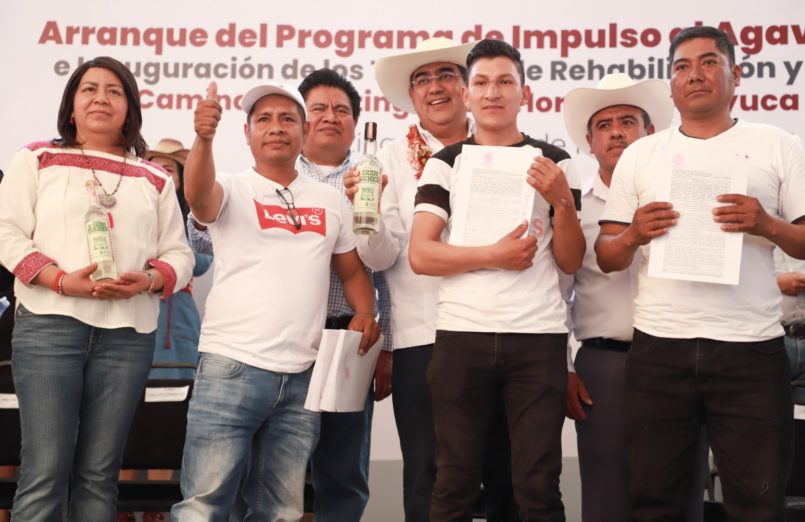 Sergio Salomón puntualizó que el actual gobierno estatal culminará con 10 mil hectáreas de agave mezcalero gracias a este programa, cuyos beneficios no tienen costo para las personas que lo reciben, a quienes pidió darles seguimiento a sus proyectos a través de las escuelas del Campo del gobierno estatal.