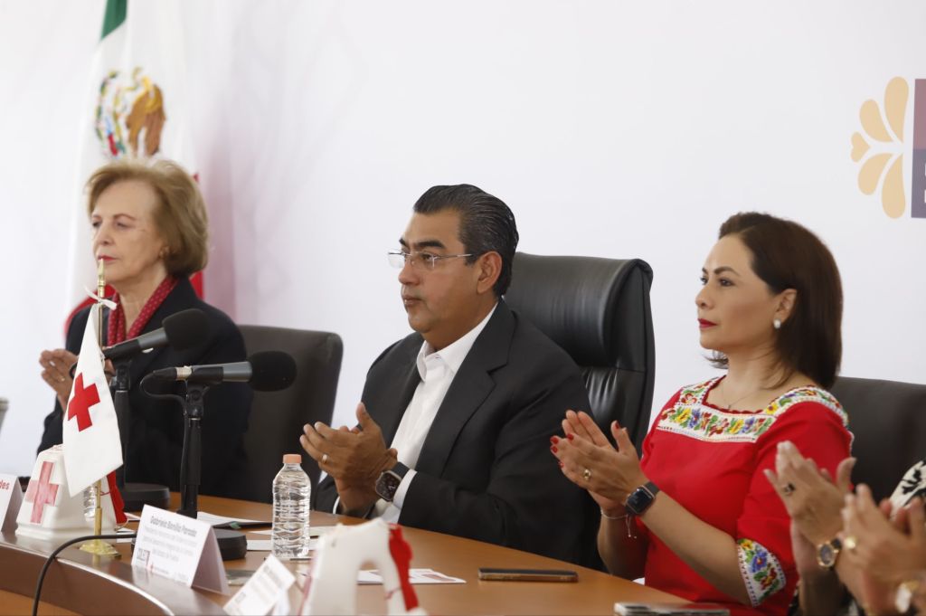 CIUDAD DE PUEBLA, Pue.- Al llamar a la sociedad a respaldar a la Cruz Roja y al hacer un donativo de más de un millón de pesos, el gobernador Sergio Salomón; y Gaby Bonilla, presidenta honoraria del Patronato del SEDIF, así como representantes de esta institución iniciaron la Colecta 2024, que este año lleva el lema “Todos Somos Héroes”.