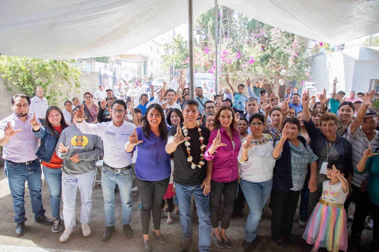 Posteriormente, se reunió con militantes de San Jerónimo Tecuanipan, donde lo recibió Rocío Simón, una joven que a muy temprana edad le llamó la atención la actividad política y a sus 14 años ya buscaba un lugar en el albiazul, edad en la que conoció a Lalo Rivera, que andaba recorriendo el estado como Presidente Estatal del PAN, reafirmando su decisión de participar y poder hacer un cambio en su comunidad.