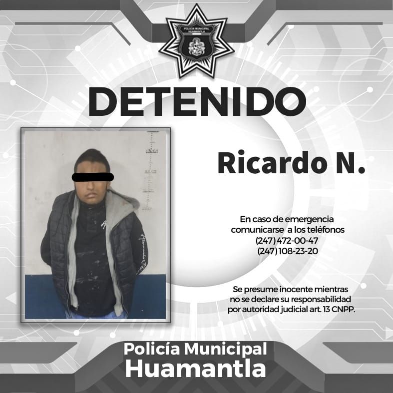 Elementos de la Dirección de Seguridad Pública de Huamantla detuvieron a una persona del sexo masculino que intentó sustraer mercancía de conocido centro comercial y por poseer sustancia parecida al cristal.