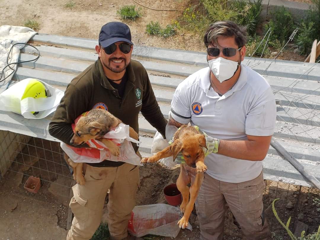 La dirección de protección civil municipal, recibió reporte vía telefónica de un canino atrapado en calzada 15 de septiembre en la comunidad de Santa Úrsula, al llegar al lugar se percataron de que en el interior se encuentran dos caninos cachorros color café, siendo rescatados con éxito ambos.