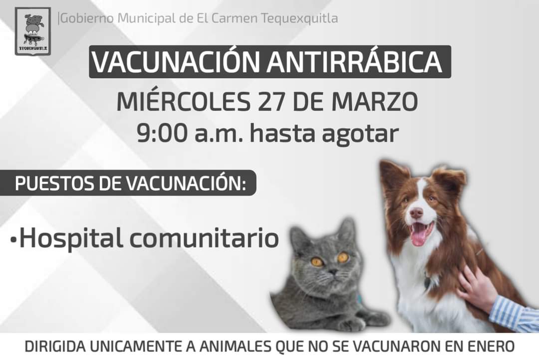 📢📢MAÑANA MIÉRCOLES VACUNACIÓN ANTIRRÁBICA EN TEQUEXQUITLA📢📢 Publicado porEXPRESION26 de marzo de 2024Publicado en Edo Tlaxcala, Nacional, Noticias, Salud, Tequexquitla 26 DE MARZO 2024 MIÉRCOLES 27 DE MARZO Comparte esto: Haz clic para compartir en X (Se abre en una ventana nueva) X Haz clic para compartir en Facebook (Se abre en una ventana nueva) Facebook Me gusta Cargando... Relacionado