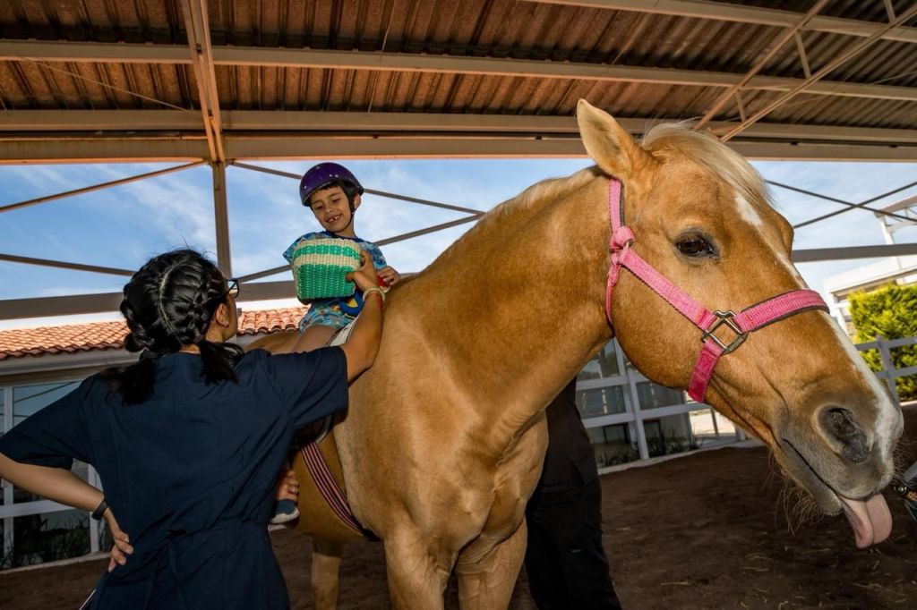 - Equinoterapia para la coordinación, el equilibrio, seguir instrucciones y la interacción cercana con el caballo.