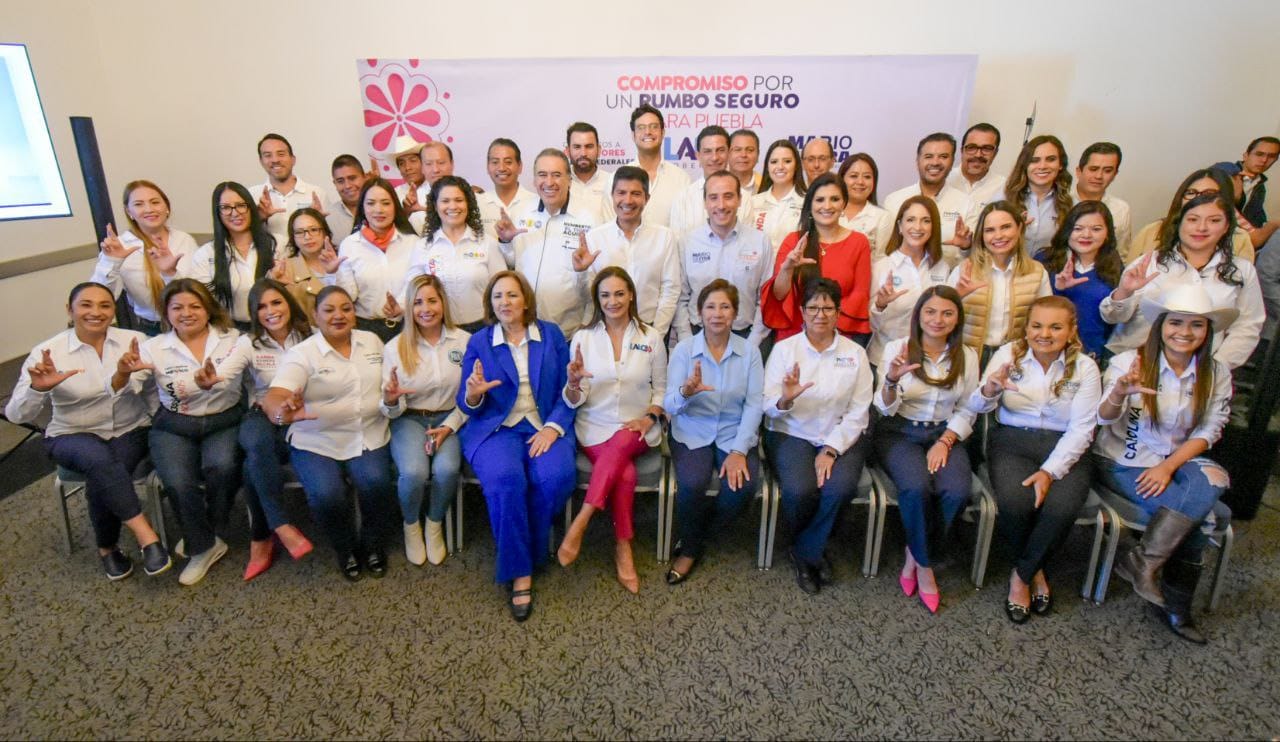 Lalo Rivera, candidato a la gubernatura del Estado y candidatos a legisladores locales y federales firmaron el ‘Compromiso por un Rumbo Seguro para Puebla’ para que los recursos de los programas federales regresen a la entidad y a los municipios y brindarles las herramientas para resolver las problemáticas que les aquejan.