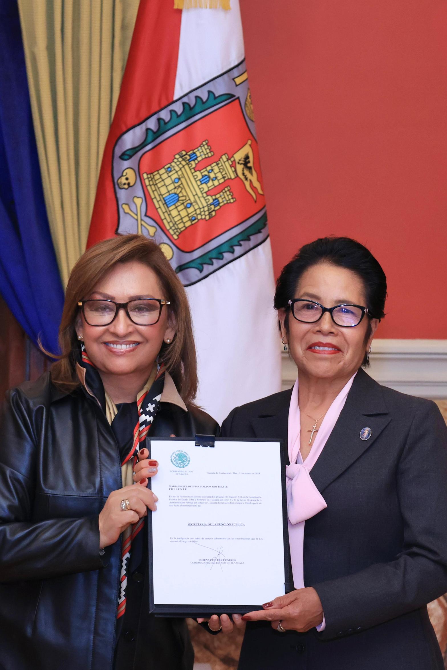 En el salón rojo del Palacio de Gobierno, la mandataria reiteró su confianza en los atributos profesionales, aptitudes de sensibilidad humana y honestidad de la nueva funcionaria para fortalecer las políticas públicas en materia de control interno, evaluación de la gestión gubernamental e inspección del gasto público, anteponiendo el bienestar de los tlaxcaltecas.