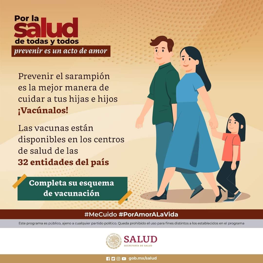 La coordinación de salud municipal informa sobre la Campaña de Recuperación de cobertura de vacunación, con énfasis en prevención del Sarampión, Rubeola, Parotiditis y Poliomielitis, acude a tu Centro de Salud más cercano, en un horario de 09:00am a 06:00pm, no olvides llevar copia de CURP y cartilla de vacunación.