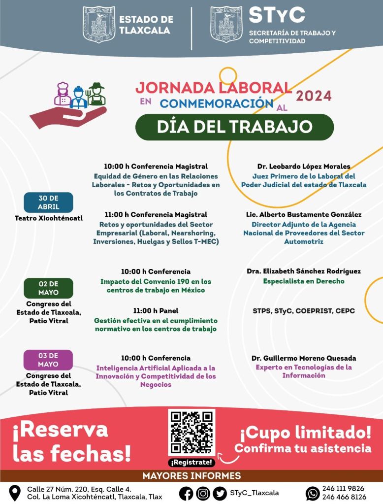 Posteriormente, a las 11:00 horas, se desarrollará el panel “Gestión efectiva en el cumplimiento normativo en los centros de trabajo”, con la participación de la Secretaría del Trabajo y Previsión Social (STPS), la STyC, la Comisión Estatal para la Protección contra Riesgos Sanitarios de Tlaxcala (COEPRIST) y la Coordinación Estatal de Protección Civil (CEPC).