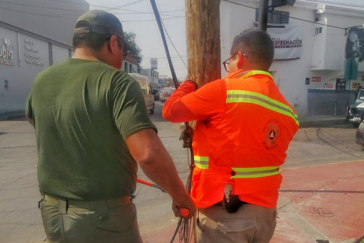 La noche de este viernes durante los recorridos de prevención y vigilancia que realiza la Dirección de Seguridad Pública Municipal, observaron que en las vialidades antes mencionadas había postes y cables tirados, por lo que solicitaron apoyo del personal Protección Civil.