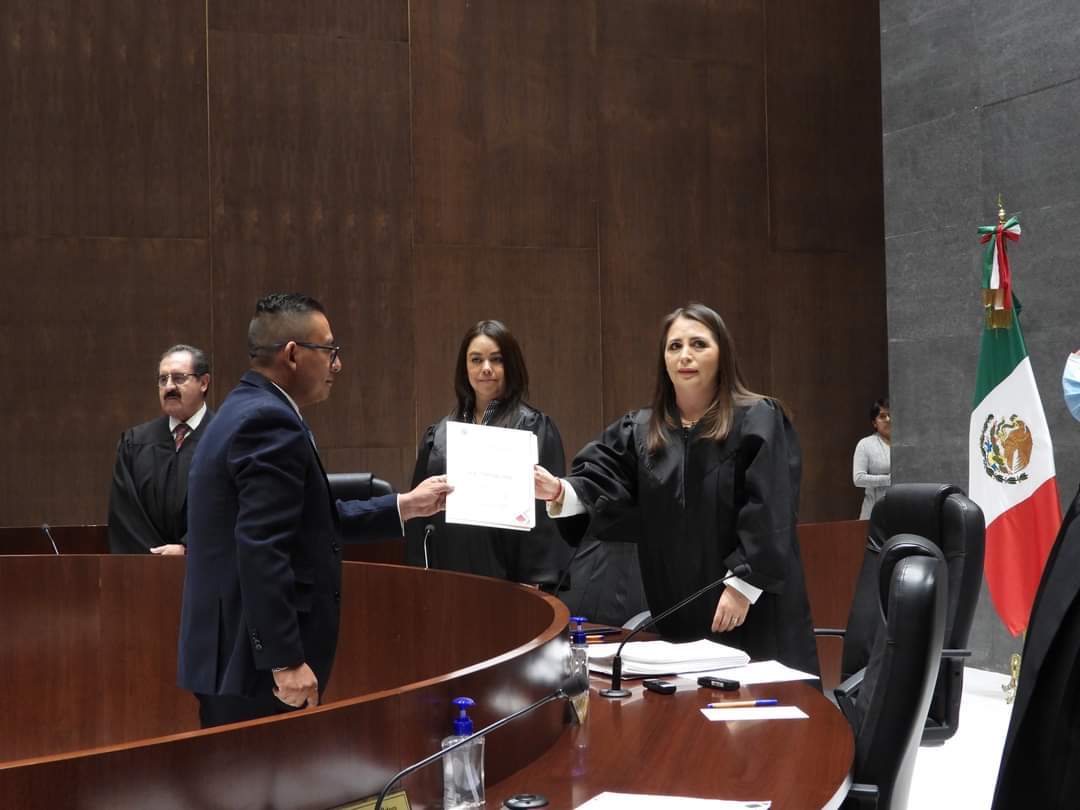 Después de la toma de protesta, la Presidenta del Tribunal Superior de Justicia del Estado, Magistrada Anel Bañuelos Meneses, entregó el nombramiento respectivo con el que acredita que cumple con los requisitos señalados en los artículos 116 de la Constitución Política del Estado Libre y Soberano del Estado de Tlaxcala, 154 y 155 de la Ley Municipal del Estado.