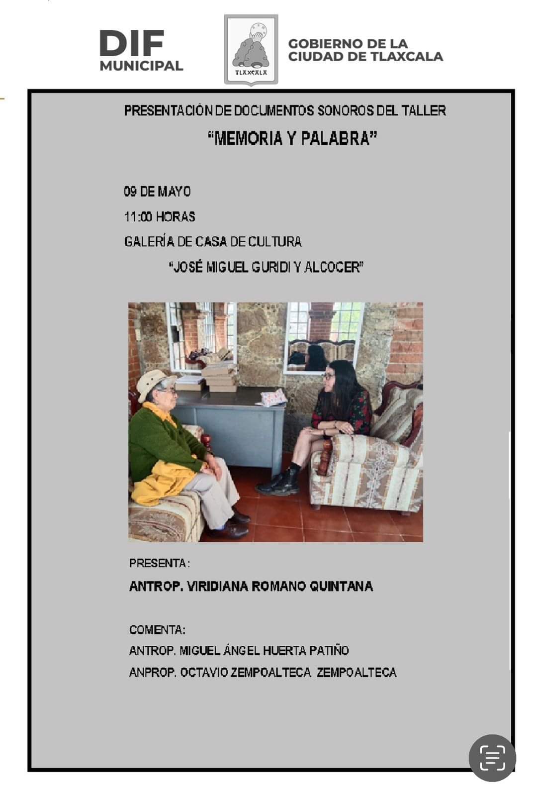 El taller memoria y palabra de la Casa de Cultura Miguel Guridi y Alcocer te invita a la presentación de documentos sonoros este jueves 9 de mayo a las 11:00 horas.