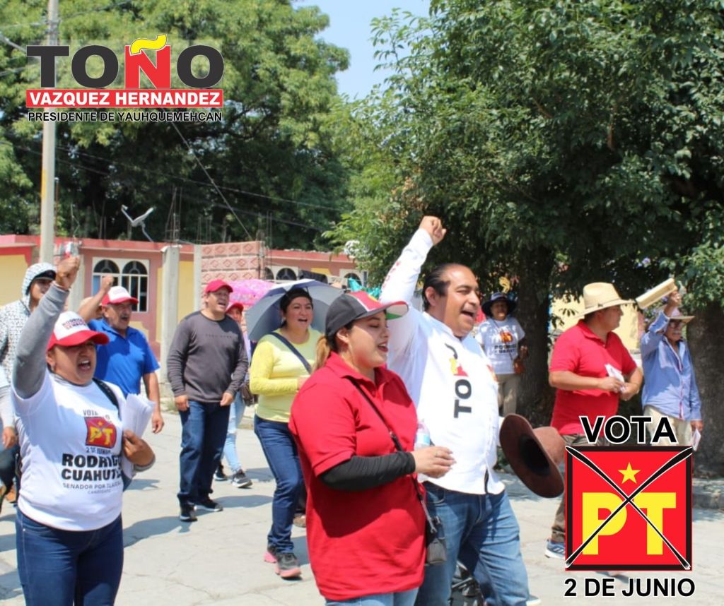 Hoy en caminata por el la comunidad de San Francisco Tlacuilohcan, el candidato por el PT a presidente municipal de Yauhquemehcan Toño Vázquez Hernández, escuchó de viva voz las necesidades por parte de los ciudadanos de esta demarcación, en donde expuso de manera directa las acciones a desarrollar en su plan de desarrollo municipal, y donde se compromete a garantizar el acceso y la calidad en materia de seguridad para todos los habitantes de cada comunidad de Yauhquemehcan.