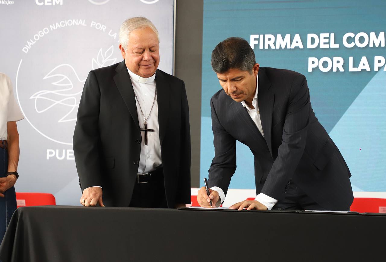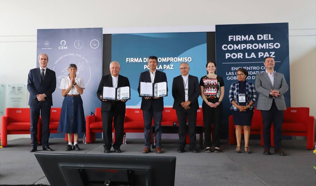 En esta firma también estuvieron Ana Paula Hernández, Coordinadora Ejecutiva del Diálogo por la Paz; la Hermana Lourdes Covarrubias, enlace de la CIRM Puebla; y María Luisa Núñez, Fundadora del Colectivo Voz de los Desaparecidos en Puebla.