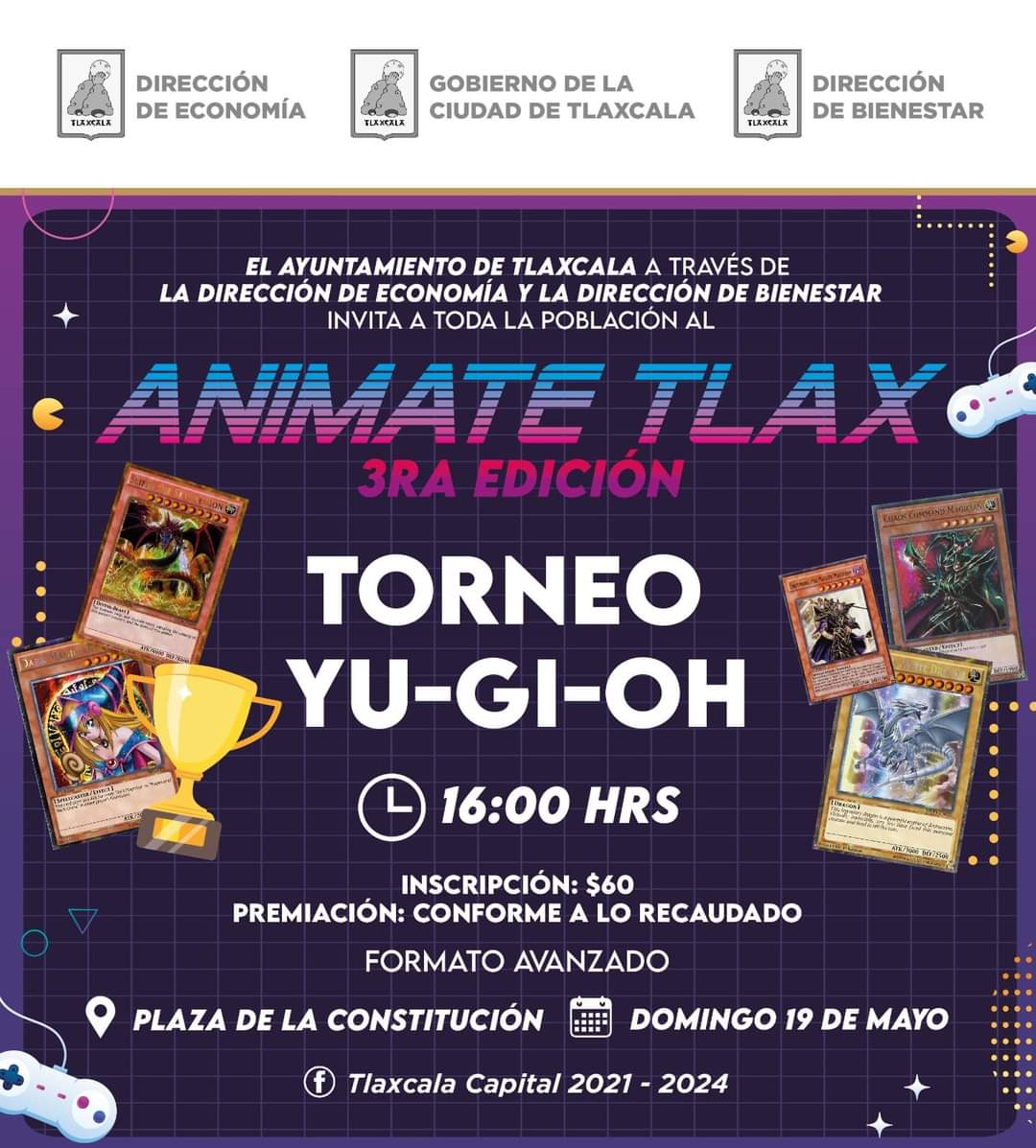El Ayuntamiento de Tlaxcala te invita a la 3ra edición de «Anímate Tlax» y su torneo de cartas de Yu-gi-oh.