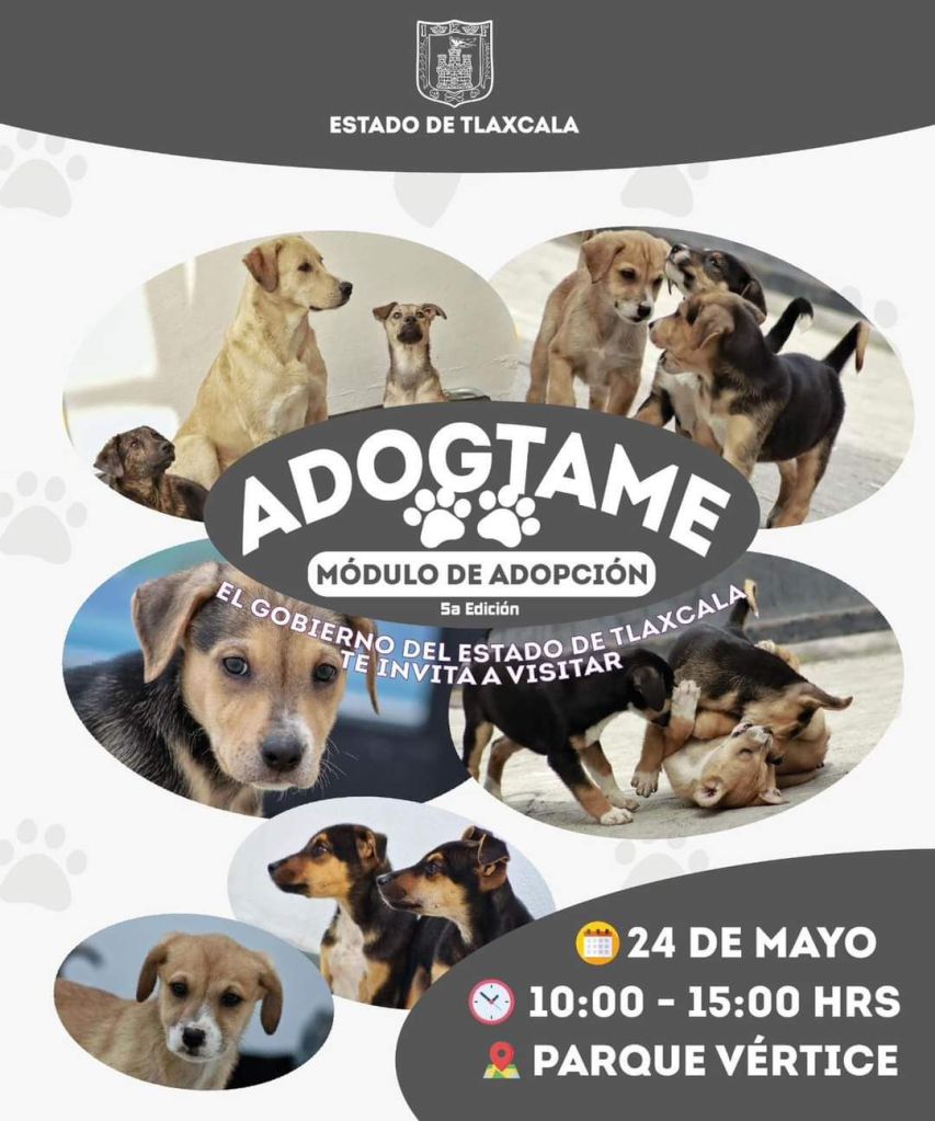 🐾 ¡Acompáñanos este viernes 24 de mayo en Parque Vértice Tlaxcala de 10 de la mañana a 3 de la tarde para nuestro evento «Adogtame»! 🐾