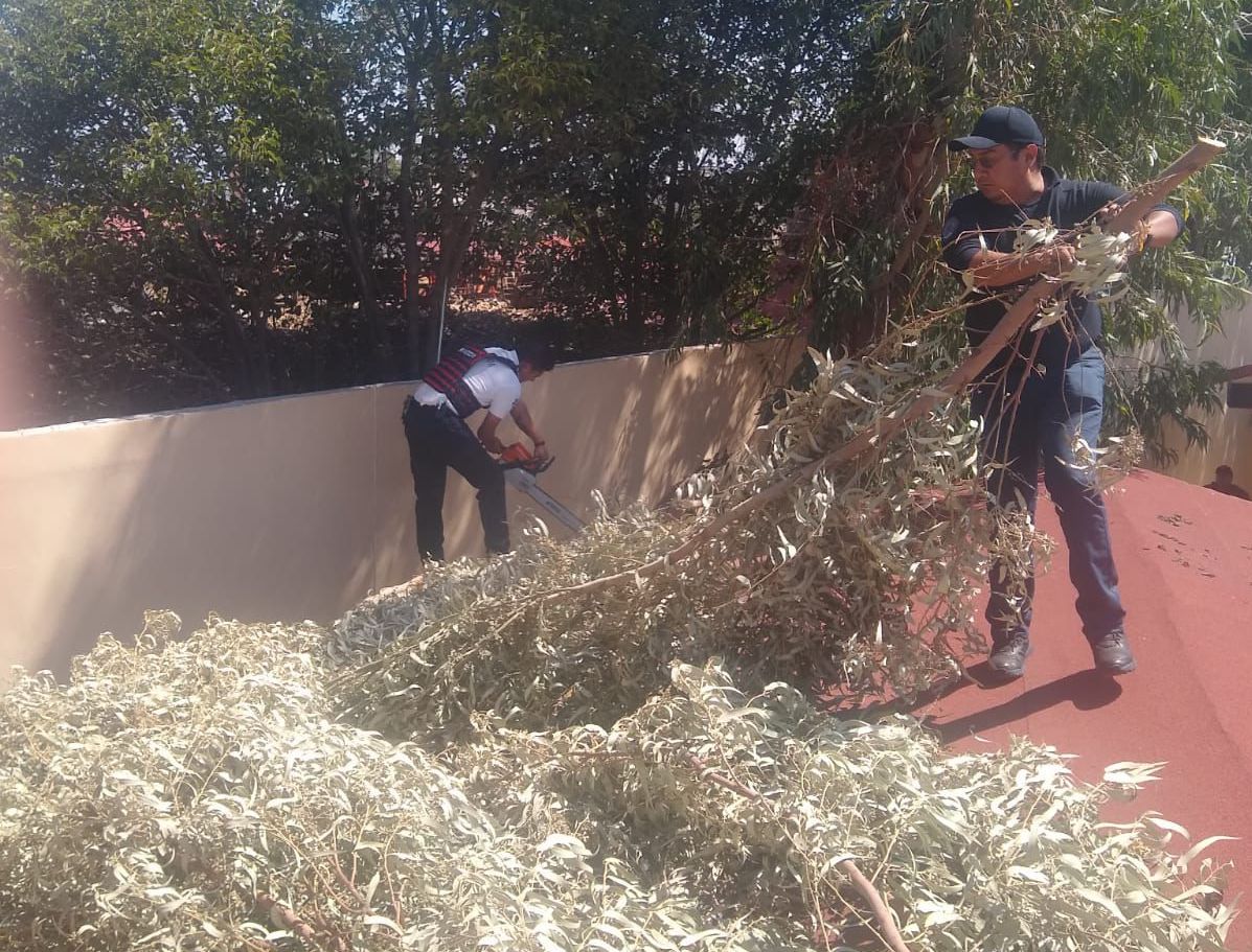 En conjunto con personal de Servicios Públicos Municipales, se brindó apoyo inmediato para prevenir cualquier incidente con los menores de edad, esto derivado a que durante la noche, se registró la caída de dos ramas que obstaculizaban el paso a los salones y se encontraban fragmentadas.