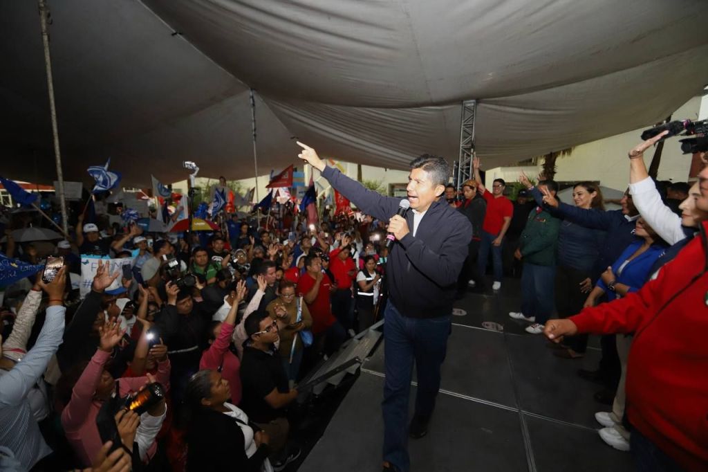Ni la lluvia detuvo el encuentro de Lalo Rivera, candidato a la Gubernatura por la Coalición ‘Mejor Rumbo para Puebla’ con las cuatro mil personas que se dieron cita en la Plaza Cívica de Cuautlancingo.