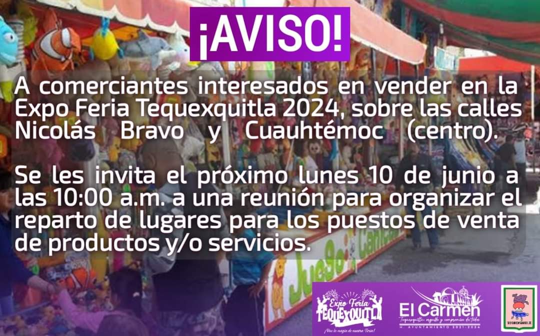 La coordinación de Desarrollo Económico de H. Ayuntamiento 2021-2024, hace un llamado a comerciantes interesados en ofrecer sus productos o servicios en la próxima Expo-Feria Tequexquitla 2024.