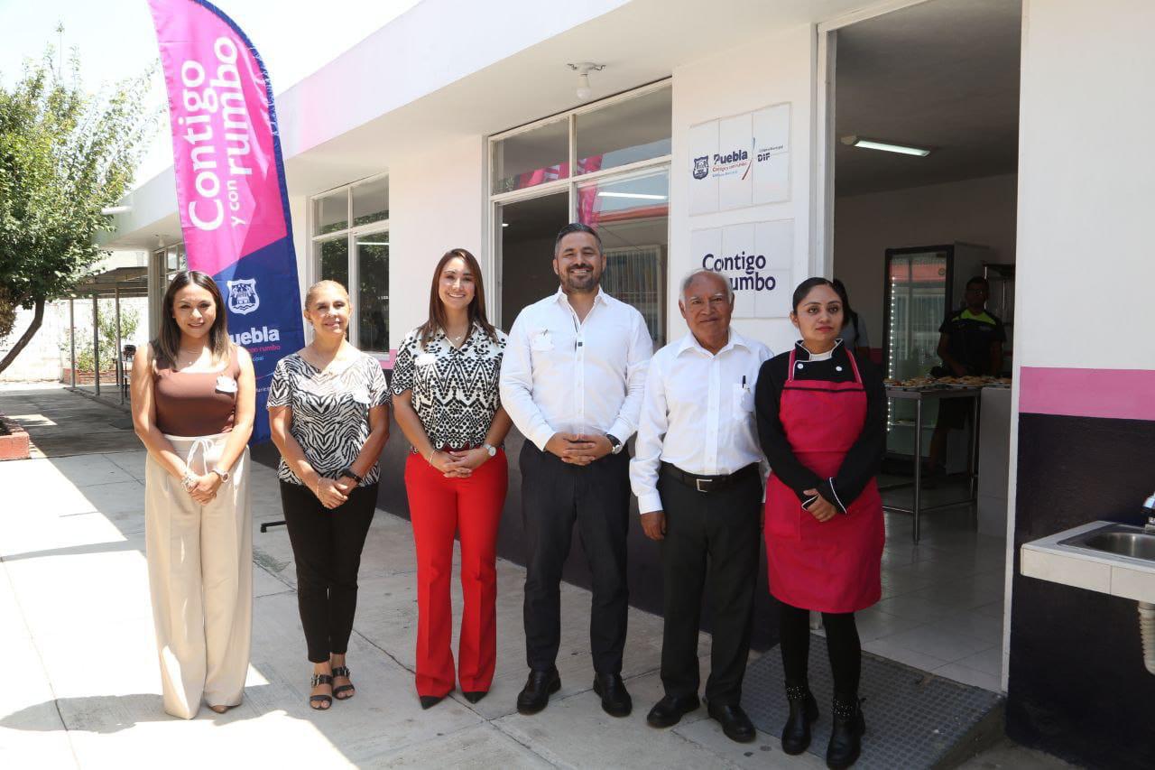 Fue Adán Domínguez Sánchez, Alcalde de la capital poblana, junto a Claudia Barrientos Hernández, Presidenta Honoraria del Sistema Municipal DIF, quienes inauguraron dicho espacio al que se le reparó la fachada e interiores, se le colocó gas, estanterías, bomba de agua y parrillas, además de nuevos refrigeradores, cubiertos y utensilios, bancas, mesas y mucho más, luego de una inversión de casi 300 mil pesos.