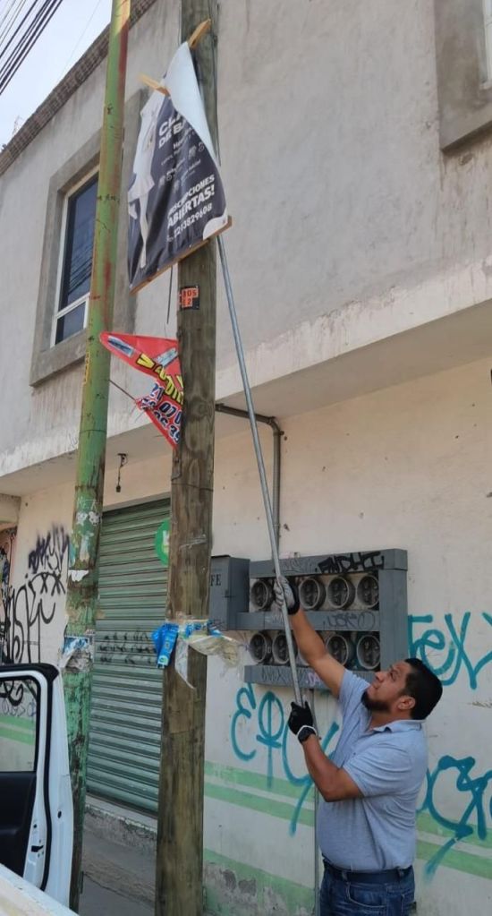 El Ayuntamiento de Puebla que encabeza el Presidente Municipal Adán Domínguez, continúa con los trabajos de retiro y limpieza de postes y puentes que contienen publicidad colocada sin autorización.