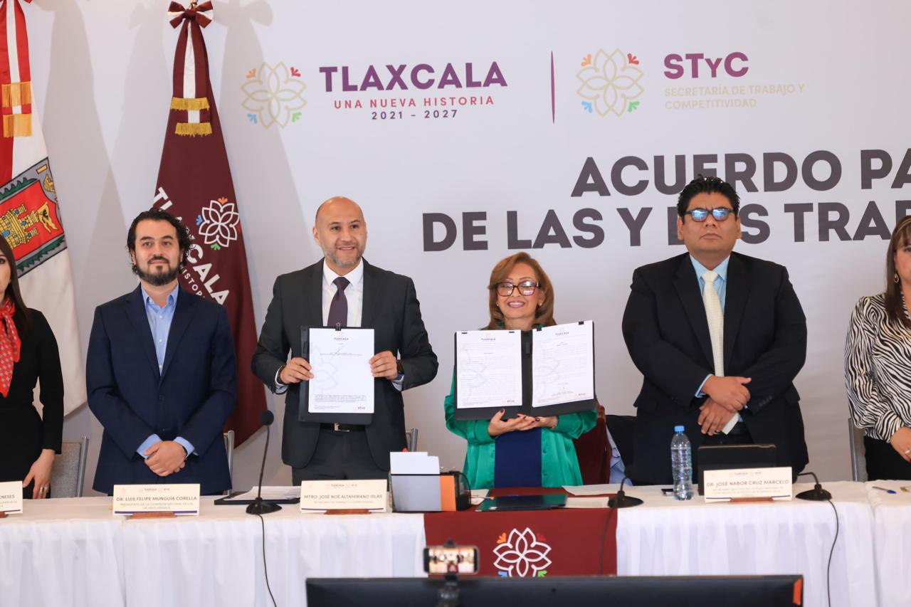 Con la finalidad de crear, comprometer, promover y elevar condiciones necesarias y suficientes para las y los trabajadores de Tlaxcala, la gobernadora del estado, Lorena Cuéllar Cisneros, firmó junto con la iniciativa privada un acuerdo para impulsar el trabajo digno.