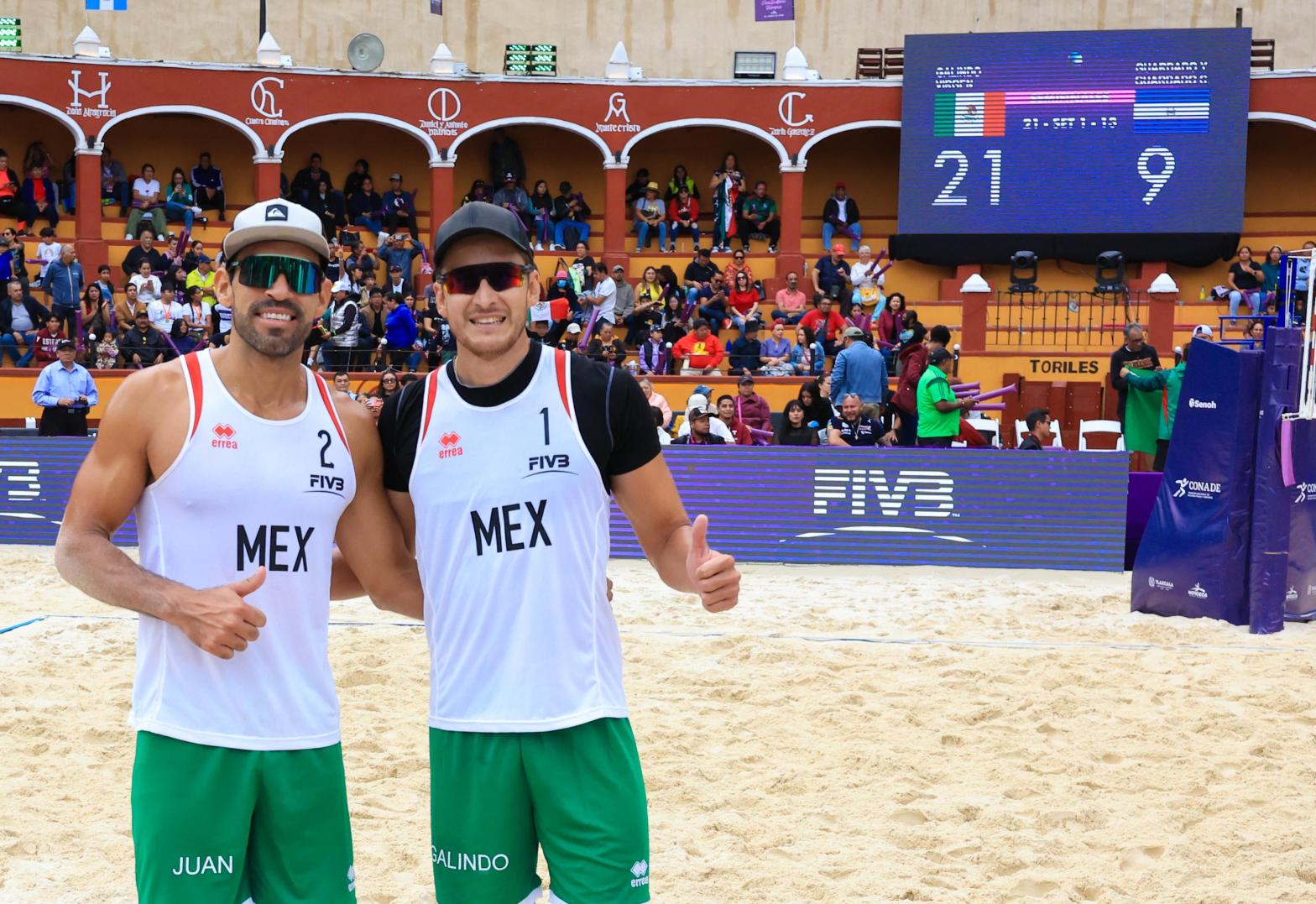 A un paso de la final, el selectivo mexicano cumplió el compromiso fijado para la competencia de hoy, avanzar a la final solo en dos sets, en el partido desarrollado en la plaza de toros Jorge «El Ranchero» Aguilar, Juan Virgen y Ricardo Galindo iniciaron la justa deportiva con una clara diferencia de puntos contra la dupla salvadoreña integrado por los hermanos Cristopher y Yoel Guardado.