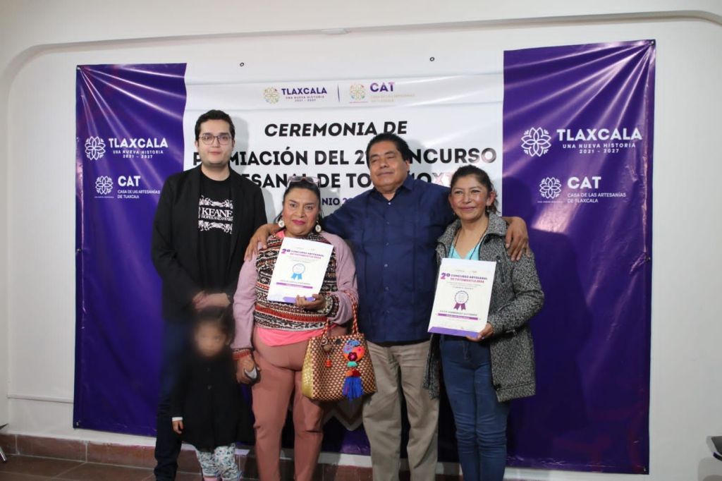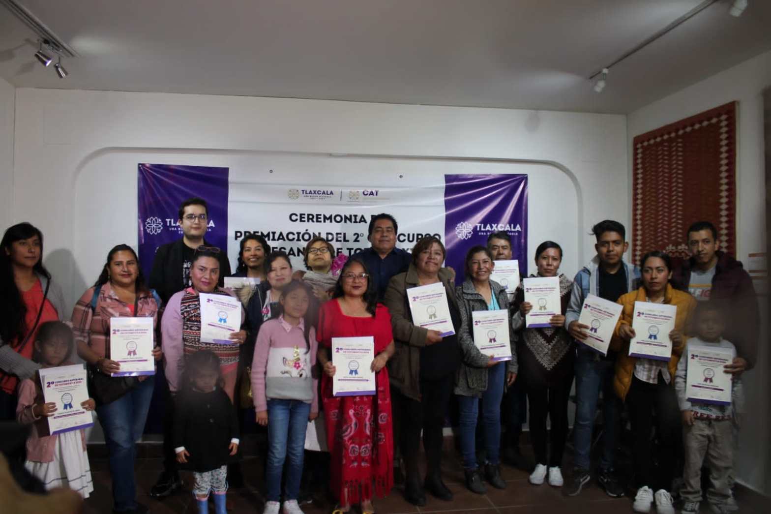 Autoridades del gobierno del estado premiaron a los ganadores de las diversas categorías del II Concurso Artesanal de Totomoxtle 2024.