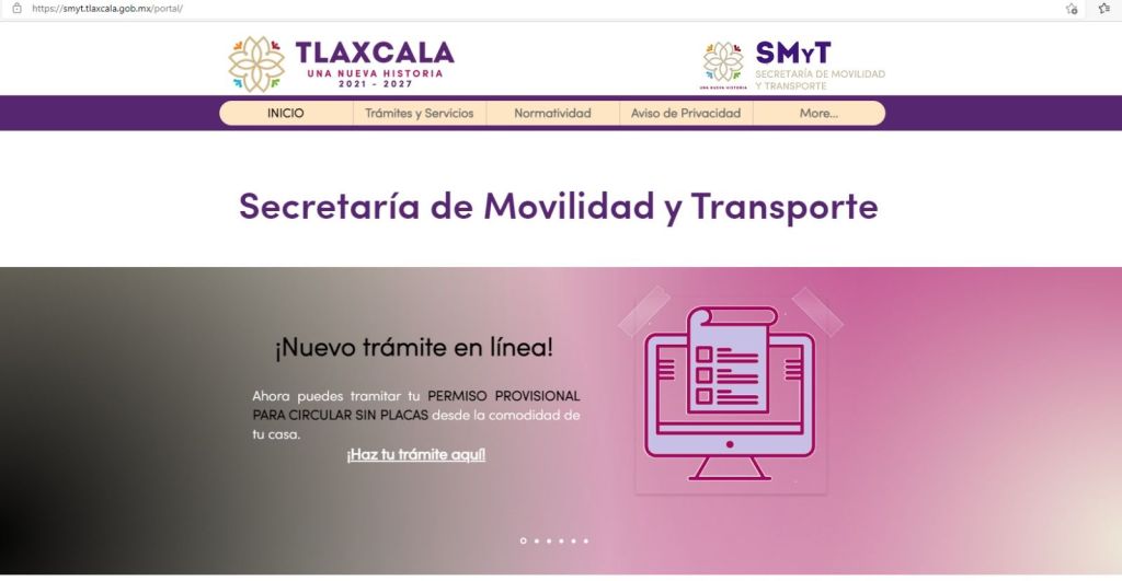 A fin de hacer más eficiente la atención que brinda a la ciudadanía, la Secretaría de Movilidad y Transporte (SMyT) habilitó el trámite en línea del permiso provisional para circular sin placas, el cual está disponible para personas físicas y morales que adquirieron un vehículo nuevo o usado que no esté emplacado.