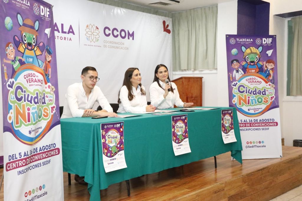 El Sistema Estatal para el Desarrollo Integral de la Familia (SEDIF) presentó este martes el curso de verano “La Ciudad de las y los Niños”, que se llevará a cabo del 5 al 16 de agosto en el Centro de Convenciones de Tlaxcala.